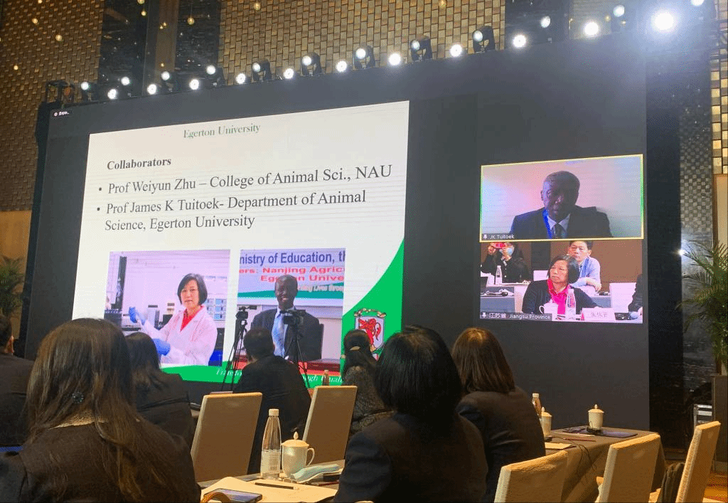 中国-非洲草食动物粗饲料资源高效利用的合作研究合作项目外方负责人肯尼亚埃格顿大学前校长、现任肯尼亚National Land Commission (NLC)的James K. Tuitoek教授、中方负责人朱伟云教授分别介绍了合作项目的内容、合作的成效及双方在合作基础上开展的相关国际合作和人才交流与培养,以及未来在平台建设、人才培养、项目成果在非洲应用推广的计划。