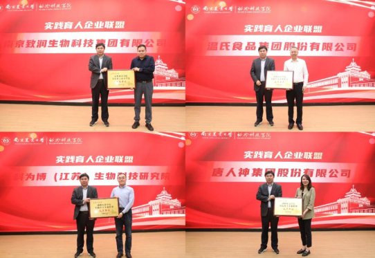 必赢线路检测3003院长毛胜勇为南京致润生物科技集团有限公司、温氏食品集团股份有限公司、唐人神集团股份有限公司、科为博(江苏)生物科技研究院等18家必赢线路检测3003实践育人企业联盟成员单位授牌。