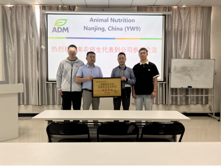 艾地盟公司南京地点负责人、厂长毕大朋及公司生产主管、安全主管、品牌主管等主要公司骨干对我校一行的到访表示热烈欢迎。双方围绕人才培养、产教融合、合作共建和用人需求等方面进行了交流。毕大朋首先介绍了公司的基本情况,并非常欢迎南农学生来公司就业和实习。吴峰副书记对ADM长期对学院的支持表示感谢,多年来双方合作举办的“畜牧场规划设计大赛”、“宠物营养知识竞赛”等活动都取得了良好效果。吴峰副书记代表学院将艾地盟动物保健及营养(南京)有限公司纳入学院实践育人企业联盟成员单位,并举行了授牌仪式。