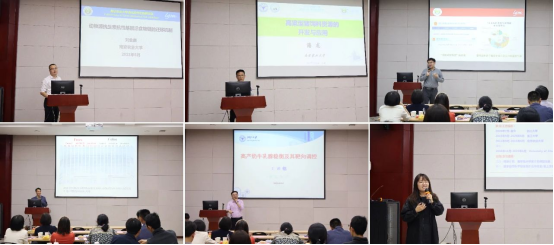 接下来,双方部分团队成员分别就近年的研究工作进展进行了学术汇报。中心刘金鑫教授、潘龙副教授、黄赞副教授分别从动物源抗生素抗性基因沿食物链的迁移机制、高粱型猪饲料资源的开发与应用、永生化猪脂肪前体细胞株的建立与应用等方面介绍了近年来的研究重点和相关成果。奶科所汪海峰研究员、王迪铭副教授、薛茗元博士后分别从群体感应介导乳酸杆菌肠道粘附和生物膜形成的作用与机制、高产奶牛乳腺稳衡及其靶向调控、奶牛瘤胃菌群与泌乳性能的关系及潜在机制方面做了介绍。