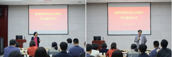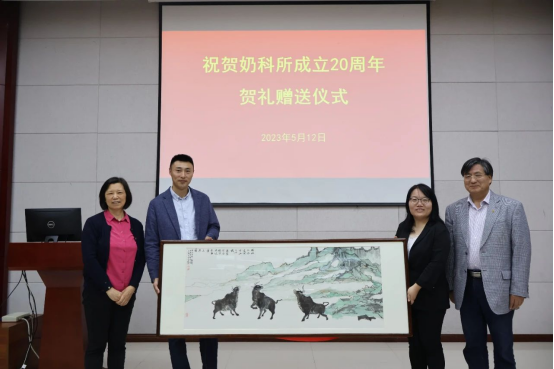 图二 南农朱伟云教授团队向奶科所赠送20周年贺礼