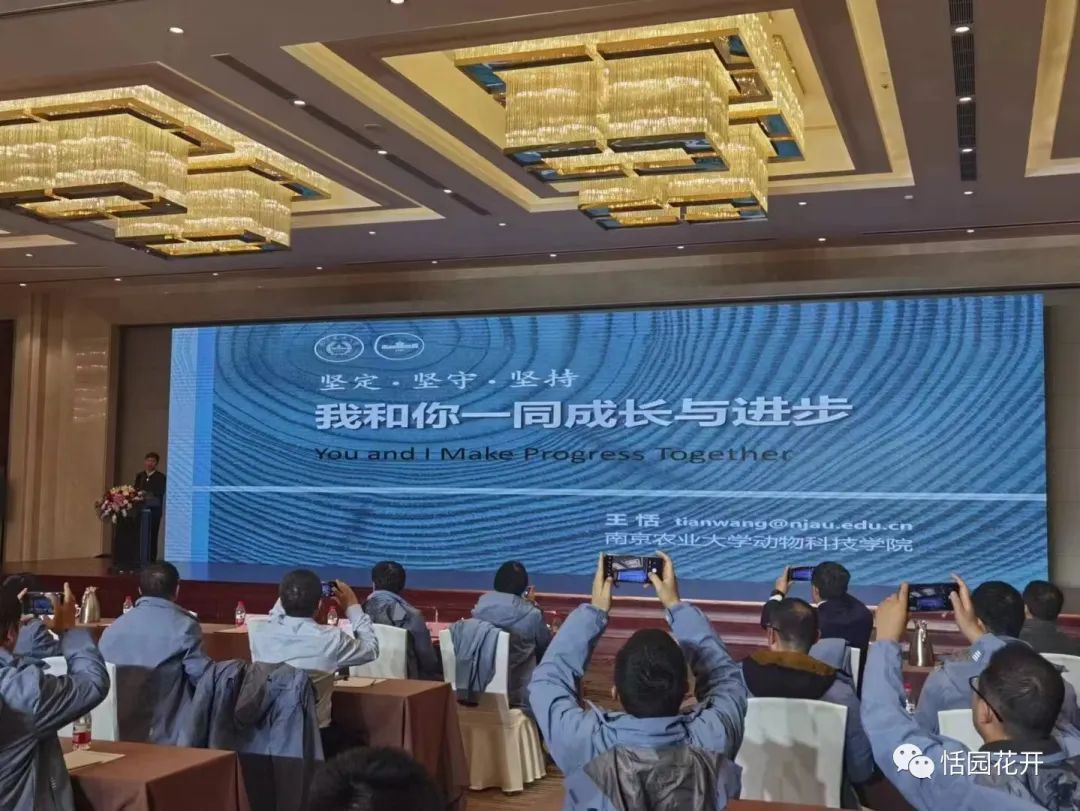 此次论坛共分为两个部分,第一部分为建康营养学术报告,专家大咖们围绕13个不同的热点主题从不同角度进行精彩分享,由广州美瑞泰科生物工程技术有限公司董事长金立志、安佑生物科技集团股份有限公司集团助理总裁邬本成、南京致润生物科技集团有限公司技术总监邹仕庚、江苏益客食品集团股份有限公司首席科学家许毅、江苏汉璟生物科技有限公司副总经理高树冬、嘉吉投资(中国)有限公司技术&商务总监吴亚男担任圆桌论坛嘉宾,更加深入的探讨了在实际生产中面临的问题和思考,与会代表认真听讲、积极互动,踊跃提出自己的观点及疑问,取得了良好效果。第二部分为王恬教授从教四十年师生交流会,王恬教授长期致力于动物营养研究,是国家级教学名师、国务院“政府特殊津贴”专家和畜牧科学领域著名学者,获全国教育系统先进工作者、庆祝中华人民共和国成立70周年纪念章、全国饲料科技工作先进个人、新中国60年畜牧兽医科技贡献奖(杰出人物)等表彰。在四十年教学科研生涯中,他的学术成就和对优秀人才的培养,很好地诠释了什么是“桃李满天下”。在交流会上,王恬教授以《我与你一同成长与进步》为主题,分享了一路走来的艰辛收获与感慨,并鼓励毕业生们要面向未来,珍惜现在。