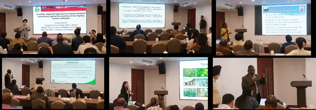 原 FAO顾问Harider Makkar研究员、广西水牛研究所杨承剑研究员、肯尼亚内罗毕大学Joyce Maina教授、肯尼亚埃格顿大学James Ondiek教授和Edward Shakala教授、蒙古生命科学大学Otgonpurev Sukhbaata教授围绕“草食动物高效生产与绿色低碳”议题,分别结合当前全球气候变化提出在畜牧养殖业中综合利用当地饲料资源、提高家畜生产力、家畜特点研究及消化道微生物分离应用研究、以及减少甲烷排放的应对策略。