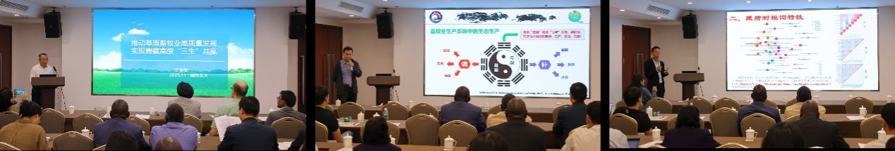 原农业农村部畜牧兽医局副局长王俊勋研究员、青海大学郝力壮研究员、西藏农牧学院谭占坤副教授围绕“青藏高原畜牧业与发展前景”议题,分别就构建青藏高原畜牧生产、生态、生活的良性循环、藏猪耐粗饲粮研究、草畜均衡生产进行了精彩的研究结果的展示。