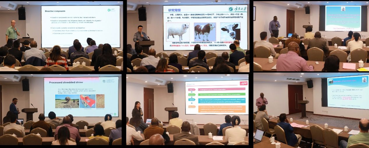 宁夏大学张桂杰教授、新疆畜牧科学院刘艳平教授、bwin必赢3003原现军教授、奥地利自然资源与生命科学大学MartinGierus教授、国际家畜研究所Padmakumar Varijakshapanicker研究员、肯尼亚内罗毕大学Charles Gachuiri教授和Raphael Wahome教授、缅甸兽医科学大学Yin Yin Kyawt副教授围绕“饲草资源开发与加工利用”议题,开展了饲草资源的开发利用、不同海拔微生物种群分析、生物活性化合物的开发、尿素-糖蜜对犊牛生长的影响、以及对非洲地区农业废弃物及饲料资源的开发利用的介绍。