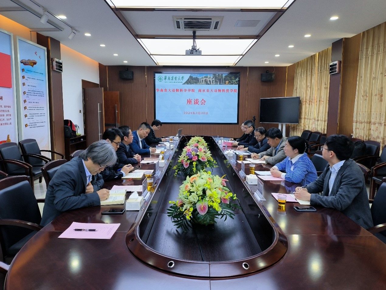 为推动学科发展,加强与兄弟单位的交流合作,学院党委书记高峰、院长毛胜勇带队于3月20日前往华南农业大学动物科学学院开展调研交流。华南农业大学动物科学学院党委书记陈志远、院长谢青梅、教授江青艳等领导与学科带头人参与调研。