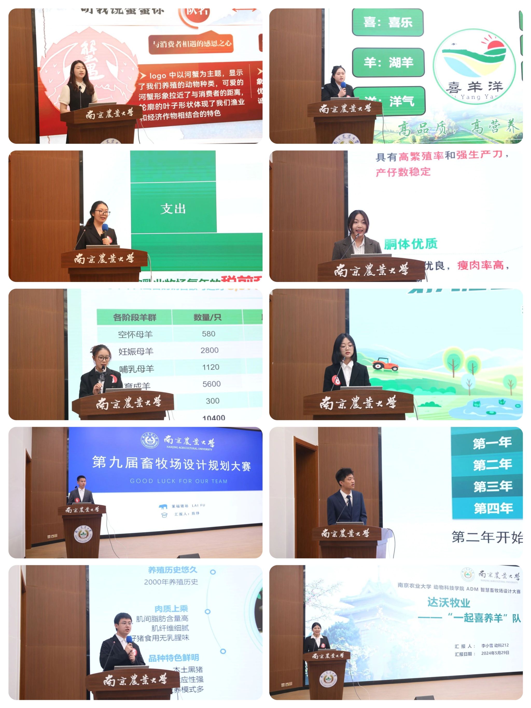 在决赛现场,各参赛队伍纷纷展示了他们的设计成果。分别选取河蟹、湖羊、莱芜黑猪等不同的养殖产品进行智慧畜牧场规划设计,所设计的畜牧场选址跨山东,江苏等多省。有的队伍注重生态环保,提出了绿色养殖的理念;有的队伍则关注科技创新,将智能化技术应用于畜牧牧场的管理与运营中。这些设计方案不仅体现了同学们的创意和才华,也展示了他们对畜牧业未来发展的深刻思考。