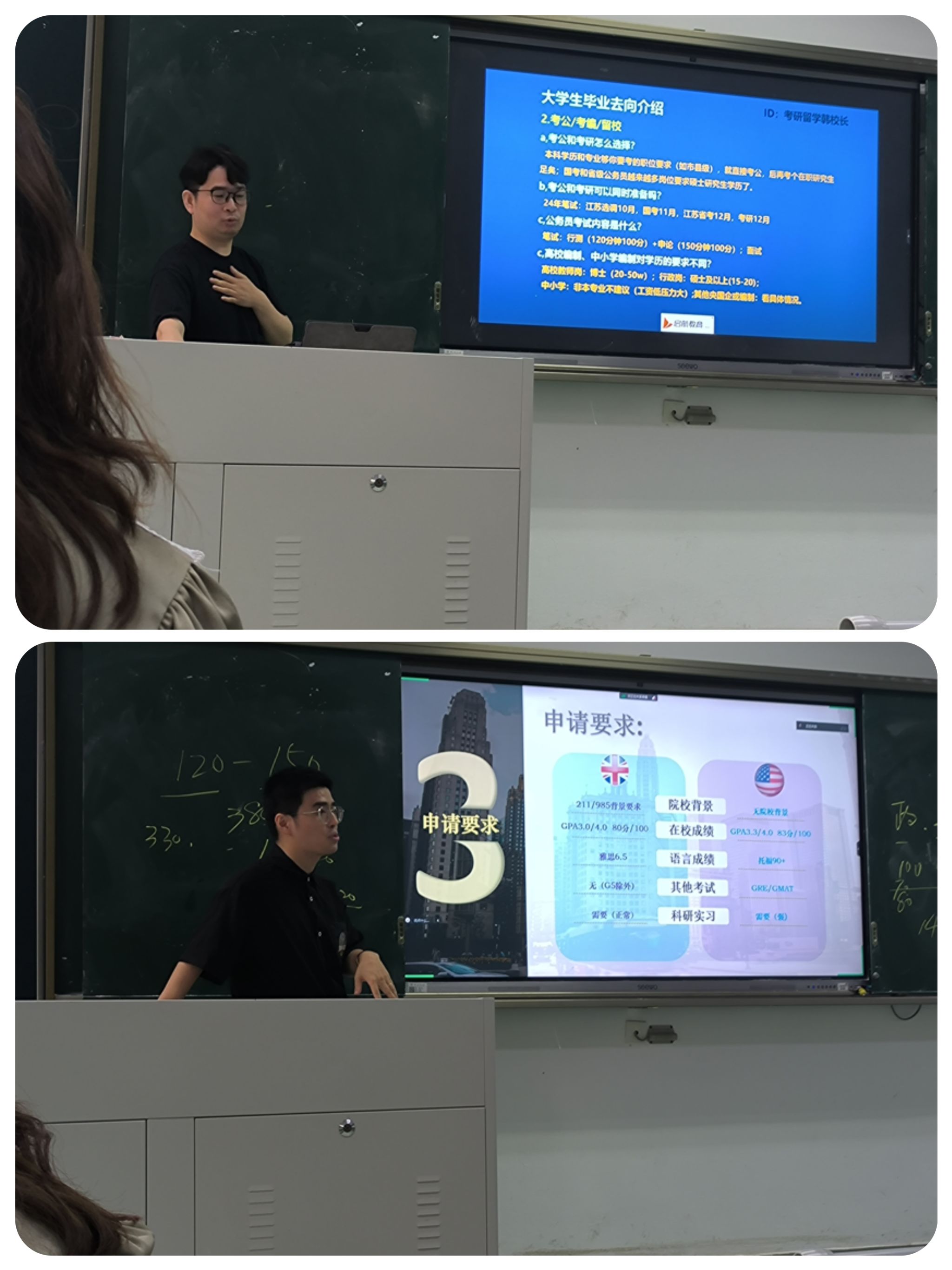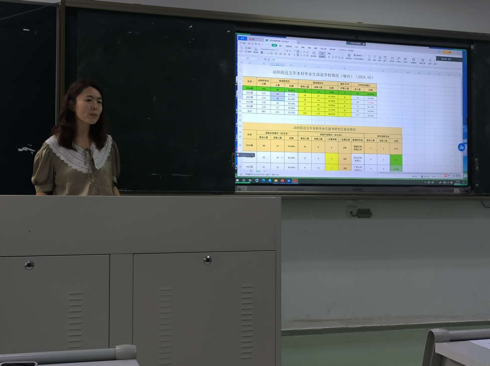 顾潇为大家介绍近五年动科院本科生保研、考研总体情况,让同学们清楚了解到当前考研、保研的形势,明确未来发展的目标以及方向,结合自身情况制定并实施计划。