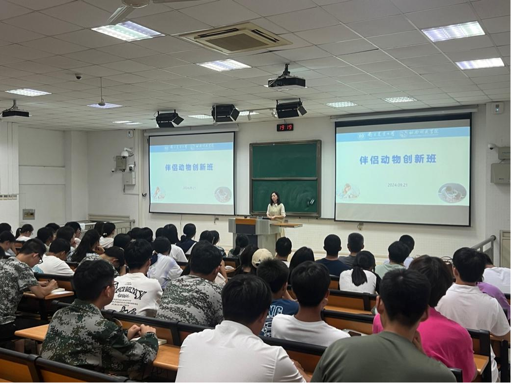 创新班经建班动员、学生自主报名和选拔三个流程。建班之前,学院副院长蒋广震与2024级动物科学专业新生进行了深入交流。蒋广震表示,该专业旨在培养掌握伴侣动物(犬科猫科动物等)科学及相关学科的基础理论、知识和技能,能够在伴侣动物食品、伴侣动物健康等相关企业、科研院所等单位从事伴侣动物食品研发、伴侣动物营养与健康管护、教学与管理等工作的复合应用型人才。
