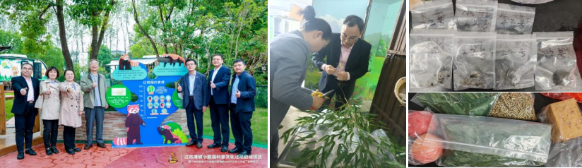 随后工作站主要成员陪同学校学院领导对小熊猫基地进行了调研。同时,工作站成员根据计划安排对小熊猫的饲料和粪便样本进行了采集,带回实验室进行检测,为后续小熊猫的繁育提供数据支撑。