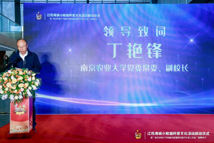 在揭牌仪式上,丁艳锋致辞表示小熊猫繁育研究专家工作站的成立是贯彻执行习近平总书记党的二十大报告关于高校与企业科教融汇、产教融合的重要实践,是双方优势互补、合作共赢的重要举措。他希望能依托小熊猫繁育研究专家工作站这一平台,深入开展小熊猫繁育和疾病防控等方面的研究,为小熊猫的种群保护和可持续发展贡献力量。常州市武进区人民政府副区长王斐表示,校企合作是推动科技创新和产业升级的重要途径,工作站的成立不仅标志着双方合作迈上了新台阶,也为未来的科研创新、人才培养、成果转化等方面开启了更加广阔的合作空间。徐卫勇董事长表示工作站的正式运行必然会将一线实操与科学研究紧密的结合起来,为企业和动物保护事业的发展赋能,为小熊猫物种的饲养繁育再立新功。