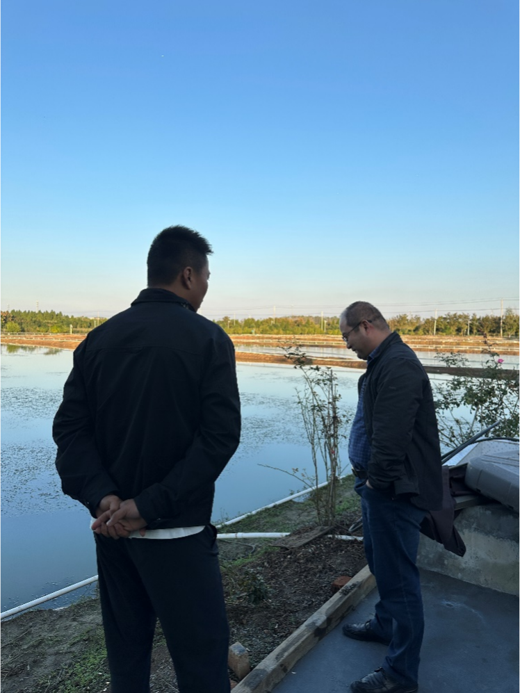 在南京丽铭生态园,青虾团队与负责人赵总就青虾养殖关键技术和产业需求进行了充分交流。双方围绕养殖生态养殖技术、专用饲料、病害防治、尾水生态治理、养殖效益提升等关键问题进行了深入探讨,共同寻求更加高效、环保的水产养殖解决方案。赵总表示,目前养殖水体污染问题较为严重,且无准确高效的应对措施,这一问题亟需解决方案。