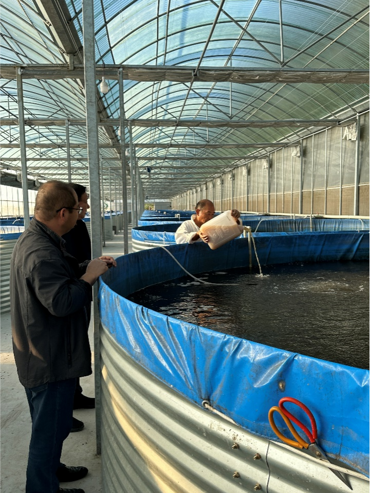 调研期间,团队针对性地投放了自主研发的降氮微生物产品,旨在有效降低养殖水体中氨氮和亚硝酸盐含量,改善水质,为青虾提供一个更加健康的生长环境,使尾水排放总氮达标。后期将根据产业需求,在原有的专利微生物的基础,进一步通过辐射育种,培育较低温度下也能高效工作的降氮菌,这一创新技术的应用,有望为青虾的绿色健康养殖发展提供助力。