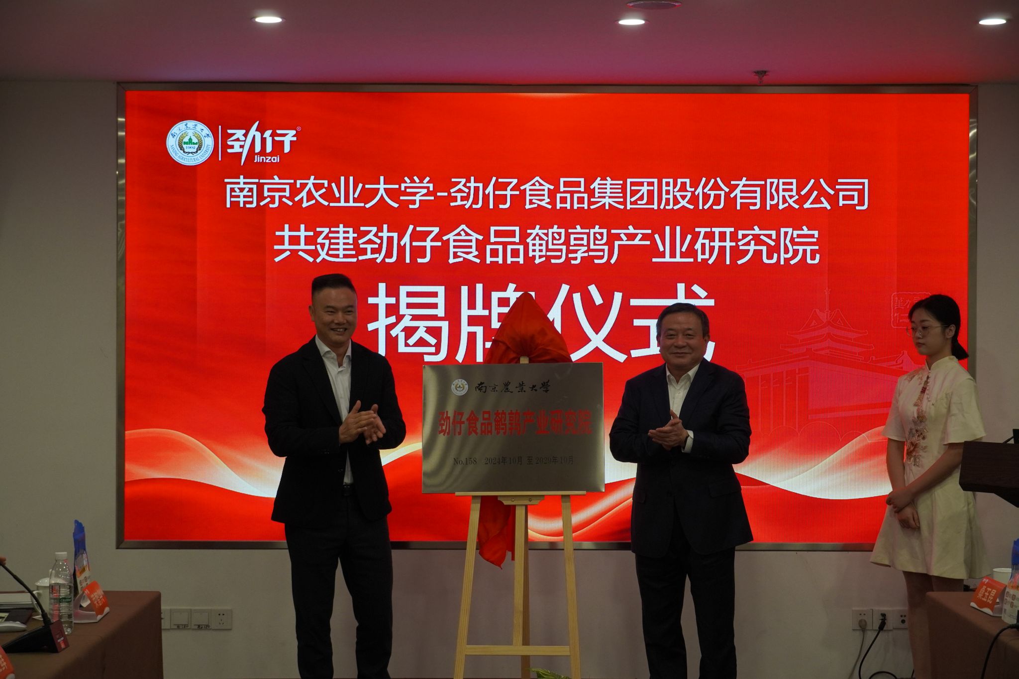 2024年11月6日上午,我校与劲仔食品集团股份有限公司共建bwin必赢3003-劲仔食品鹌鹑产业研究院签约、揭牌,暨必赢线路检测3003研究生实践基地揭牌活动在卫岗校区举行。我校党委副书记、纪委书记吴荣顺,必赢线路检测3003院长毛胜勇,劲仔食品集团股份有限公司副总裁刘特元、食品研发部总监尹世鲜、市场总监戚小红等出席,签约仪式由必赢线路检测3003党委书记桑玉昆主持。