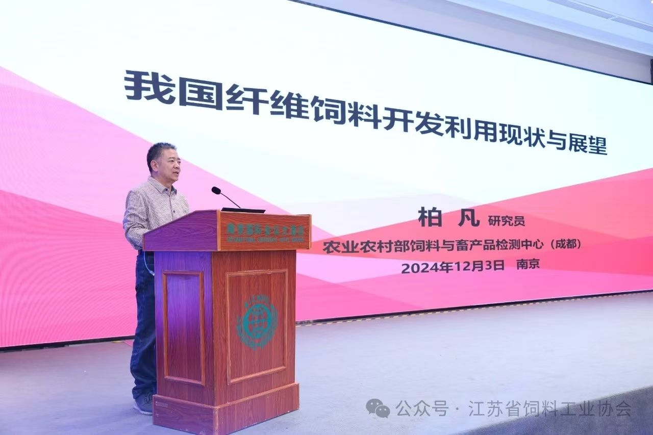 农业农村部饲料与畜产品检测中心(成都)柏凡研究员作《我国纤维饲料开发利用现状与展望》。他指出,开发利用纤维饲料是畜牧业发展与饲料禁抗的双重需要,科学利用我国丰富的纤维饲料资源可有效缓解饲料粮供需压力,未来应以纤维饲料生产企业开发产品为动力,推动纤维饲料的基础研究;与此同时,中国饲料工业协会也将持续以制定团体标准等形式,推动纤维饲料的产业化应用。
