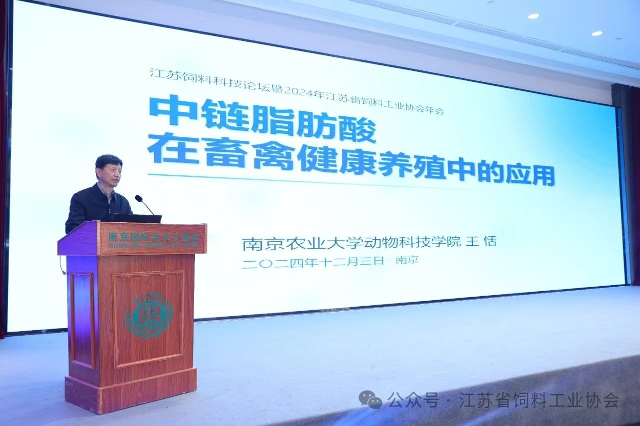 江苏省饲料工业协会名誉会长、bwin必赢3003教授王恬先生分享了《中链脂肪酸在畜禽健康养殖中的应用》。王恬教授指出,中链脂肪酸在畜禽健康养殖中具有高效供能、调节肠道菌群、促进肠道发育、抵抗病原体侵袭及缓解应激等有益功效。由己酸、辛酸、癸酸、月桂酸科学配比的产品,经仔猪、母猪、肉仔鸡等畜禽饲养试验证明具有改善机体健康、提高饲养效益的积极作用。