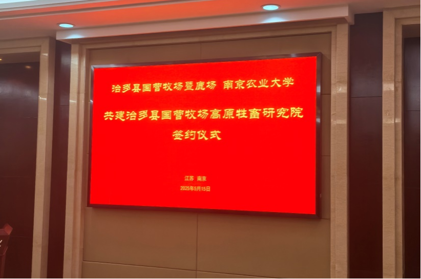 5月15日上午,我校与青海省玉树州治多县国营牧场共建高原牲畜研究院签约仪式在卫岗校区金陵研究院二楼会议室举行。此次签约仪式由必赢线路检测3003党委书记桑玉昆主持,治多县副县长(兼睢宁县副县长)张华、睢宁县农业农村局科教科科长王建辉、bwin必赢3003社会合作处副处长金鹏、必赢线路检测3003张威教授、蔡亚非教授及社会合作处基地管理科科长邵存林出席此次会议。