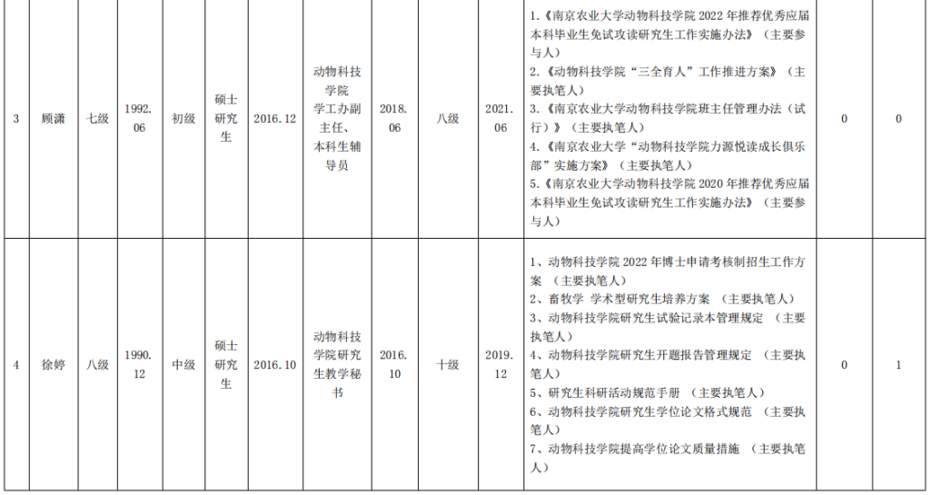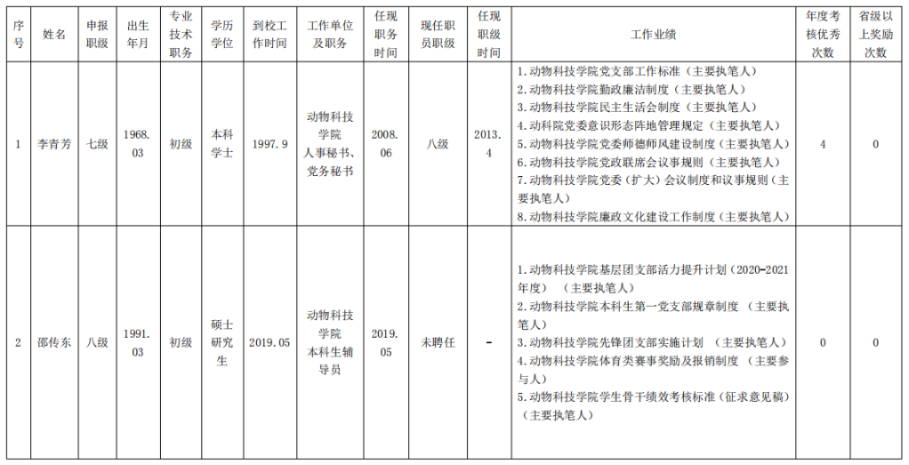 2021年动物科技学职员职级评聘公示