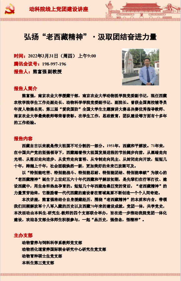 动科院线上党团建设讲座:弘扬“老西藏精神”·汲取团结奋进力量