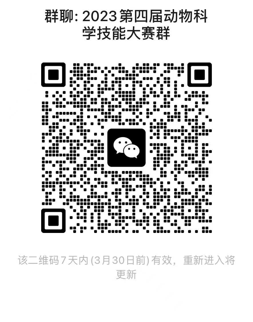 参赛方式:参赛院校各选派一支代表队,分别由1名带队教师、1-4名项目指导老师,4名动物科学专业本科学生和至多1名替补队员组成,参赛报名将通过微信工作群在线收集(文末附二维码)。