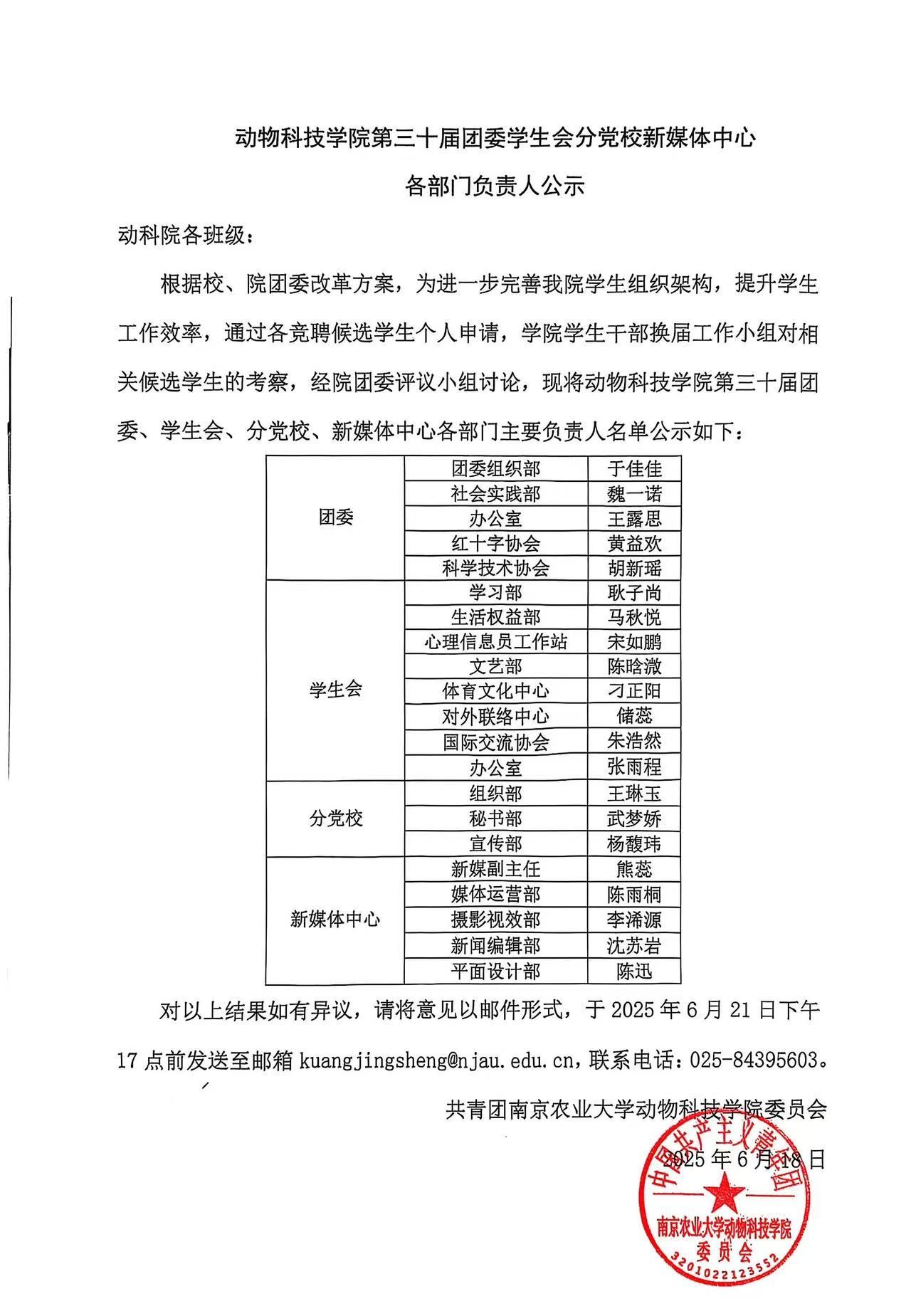 必赢线路检测3003第三十届团委、学生会、分党校、新媒体中心各部门负责人公示