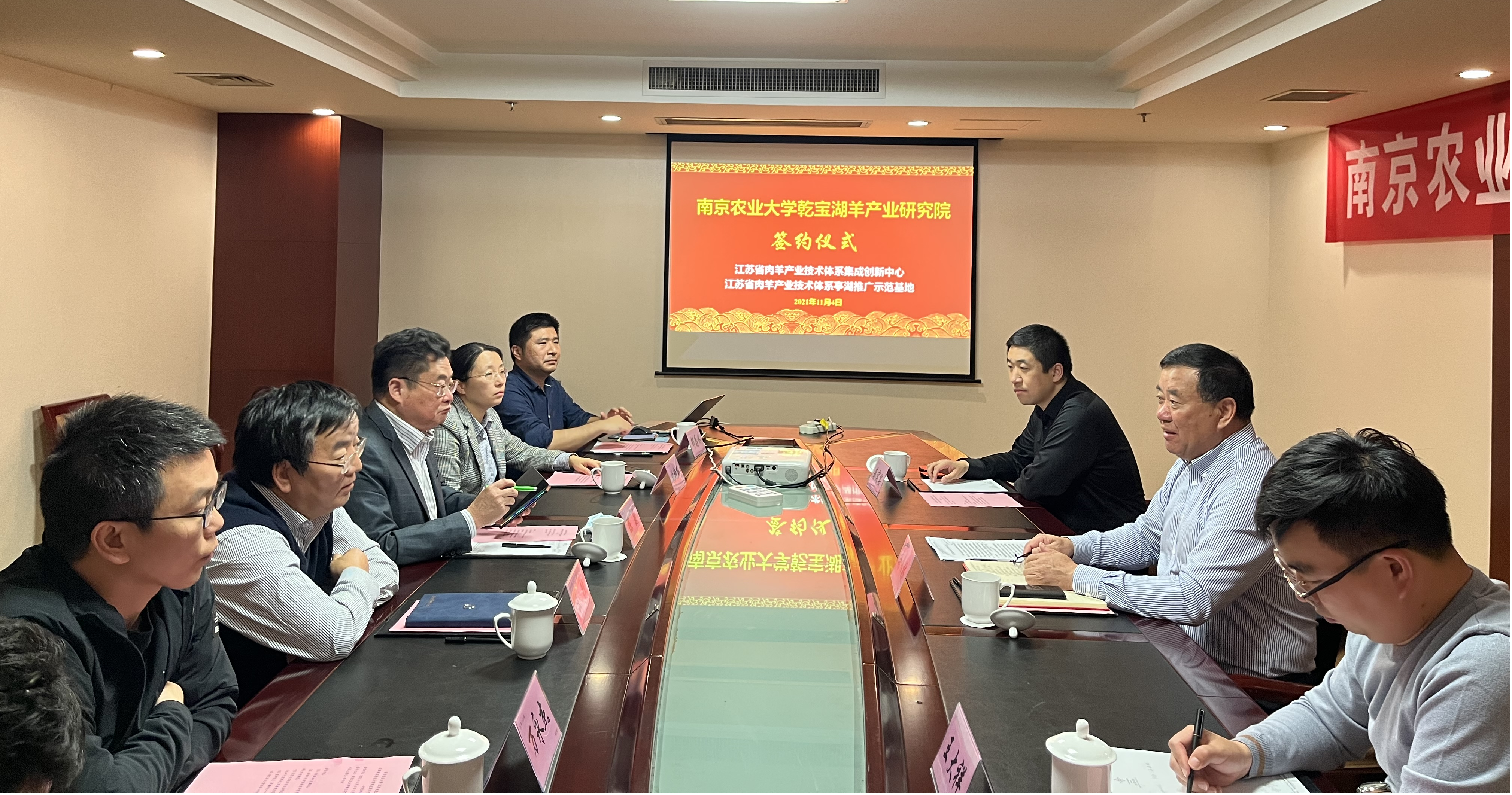 2021年11月4日,我校与江苏乾宝牧业有限公司共建南农大乾宝湖羊产业研究院签约仪式在南京翰苑宾馆举行。我校社会合作处处长陈巍与江苏乾宝牧业有限公司总裁蒋柏林分别代表学校与企业共同签署了研究院建设协议。我校社会合作处科长邵存林,必赢线路检测3003副院长张艳丽教授,羊业科学研究所团队王锋教授、万永杰副教授等及江苏乾宝牧业有限公司副总经理王大祥、经理蔡实实等20余人出席了签约活动。会议由邵存林科长主持。