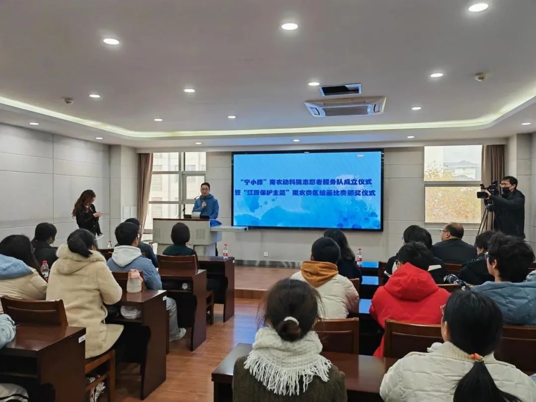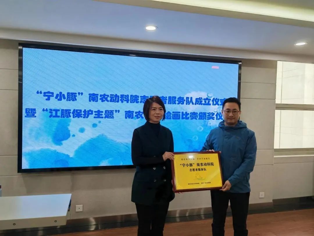 2022年12月2日下午13:30,南京广电集团和必赢线路检测3003共建的“宁小豚”江豚保护志愿者服务队在bwin必赢3003正式成立。南京广电集团康养事业部副主任马晓宁、必赢线路检测3003党委副书记吴峰、南京广电集团康养事业部“宁小豚”项目主任王强、“宁小豚”项目组王经纬、辅导员邵传东、李健以及“宁小豚”志愿队20余名同学参加了此次成立仪式。