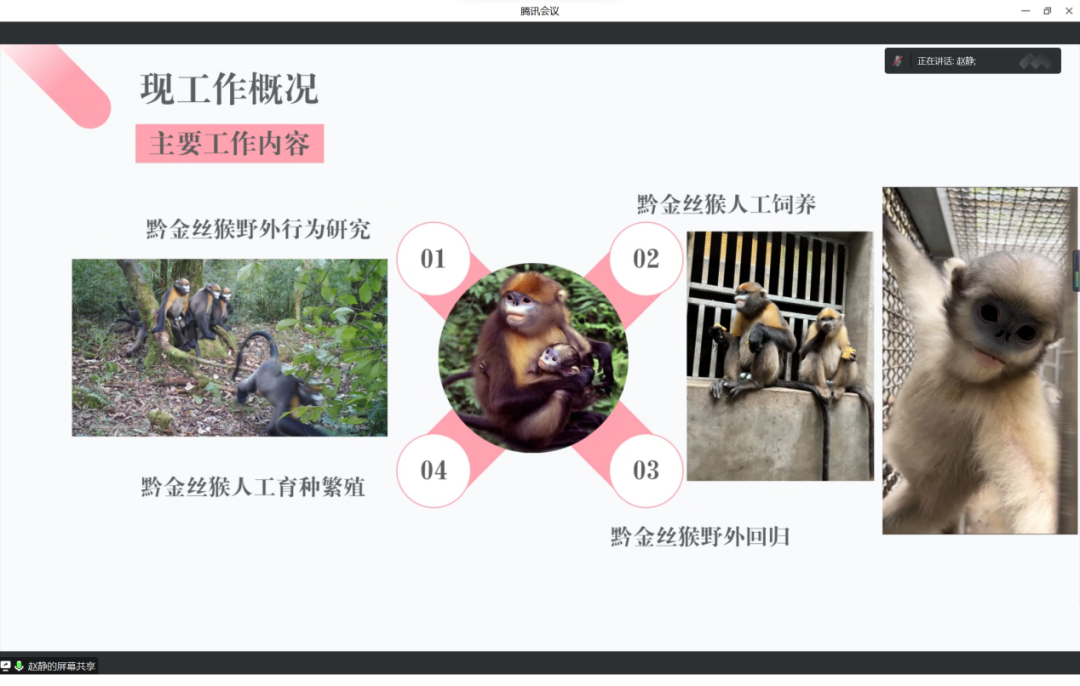 赵静,2022年6月必赢线路检测3003硕士研究生毕业。硕士毕业后考入贵州梵净山国家级自然保护区管理局太平镇试验场,开展国家一级保护动物黔金丝猴人工繁育研究和保护宣传工作,成为一名“守猴人”,并于2022年12月荣任贵州省第十四届人民代表大会代表,在今年贵州省两会上提交议案,呼吁社会各界共同关注和保护黔金丝猴,维护生物多样性安全。