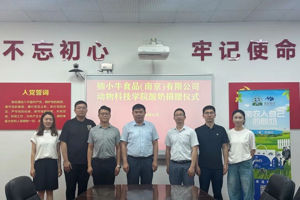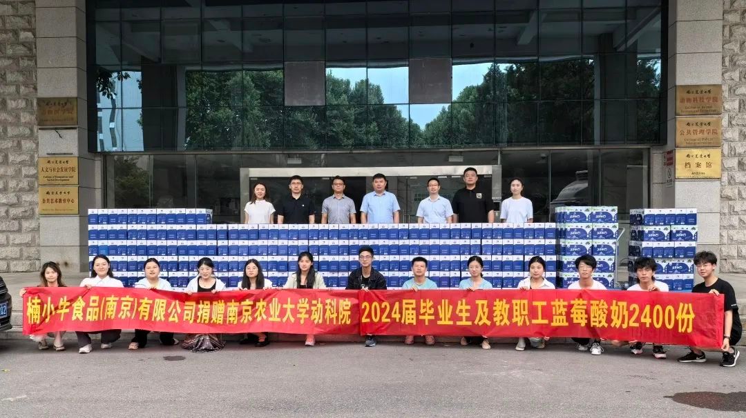 据悉,本次捐赠的蓝莓酸奶是由楠小牛食品(南京)有限公司自营牧场提供的优质生牛乳精心制成的,酸奶原料源自公司严格管理的牧场,酸奶由合作伙伴江苏维扬乳业有限公司加工生产,确保了酸奶的品质和营养。本次捐赠的蓝莓酸奶选用bwin必赢3003结对帮扶产业——麻江胖蓝莓,公司与麻江蓝莓进行深度技术合作,不仅为酸奶增添了独特的风味,还将科技创新与地方特产有机地结合,助力乡村振兴。同时,蓝莓酸奶也是动科学子创新创业的成果转化,是南农学子用双创成果对母校回馈。