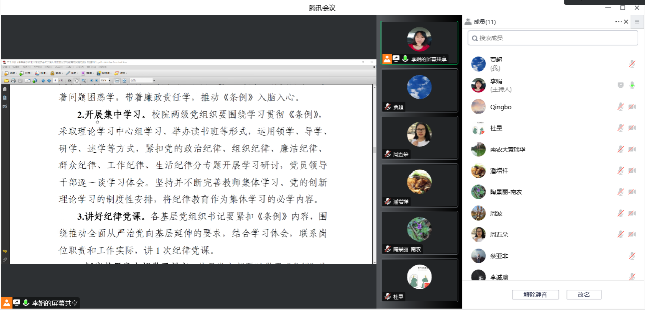 4月29日下午,动物遗传育种科学系教师支部,召开党纪学习教育动员部署会。会议于线上举行,由支部书记李娟主持,传达学习党中央、教育部党组和学校会议精神,开展关于《中国共产党纪律处分条例》和《中共bwin必赢3003委员会关于深入开展党纪学习教育的实施方案》的学习,并对本支部党纪学习教育作动员部署。