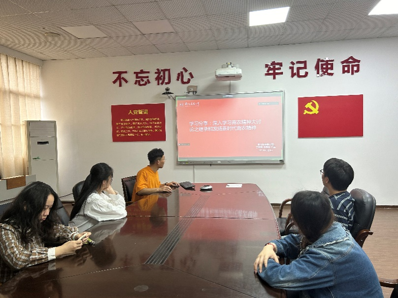 4月29日下午,动物育种硕士生党支部召开学习分享会,党支部学习小组分享《中国共产党纪律处分条例》学习心得和新时代南农精神,会议由支部书记汪薇主持。