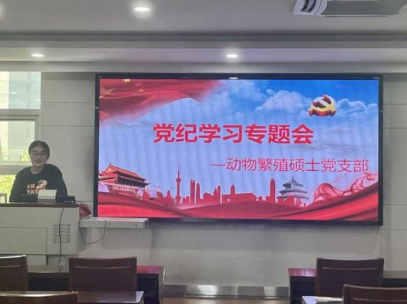 2024年5月14日下午,动物繁殖硕士生党支部召开党纪教育专题分享会。会议由支部书记樊懿萱主持,会议传达了习近平总书记关于党纪学习教育的重要讲话和重要指示精神,深入学习贯彻《中国共产党纪律处分条例》。