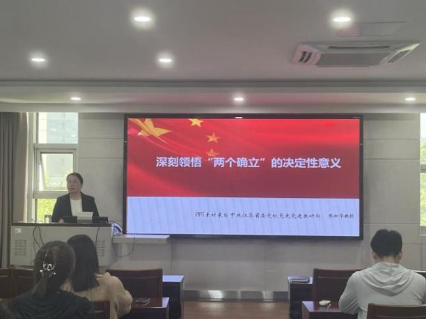 会议邀请到张艳丽院长以“深刻领悟两个确立的决定性意义”为主题为支部党员讲党课。张艳丽院长从“理论维度”、“历史维度”、“现实维度”、“实践维度”四个维度出发,深入介绍了“两个确立”对推进新时代党和国家事业发展具有决定性意义,强调了全体党员要认真贯彻落实党中央的决策部署,对党支部下一步的工作方向具有指导意义。