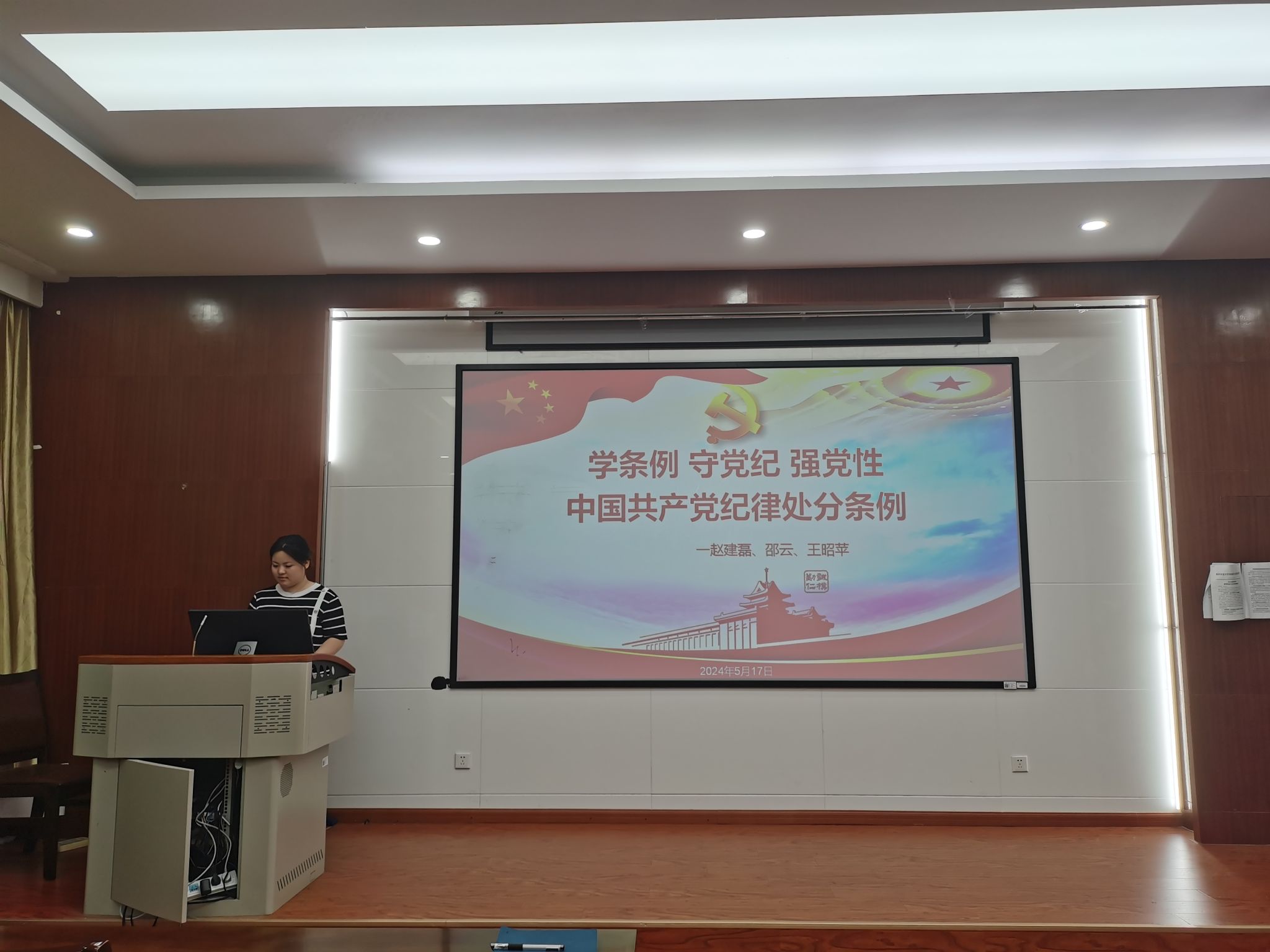2024年5月17日下午,动物营养硕士生第一党支部于逸夫楼2064召开“学条例 守党纪 强党性”学习分享会,会议由邵云同志主持,带领支部党员学习《中国共产党纪律处分条例》,本次会议共有23人参加。