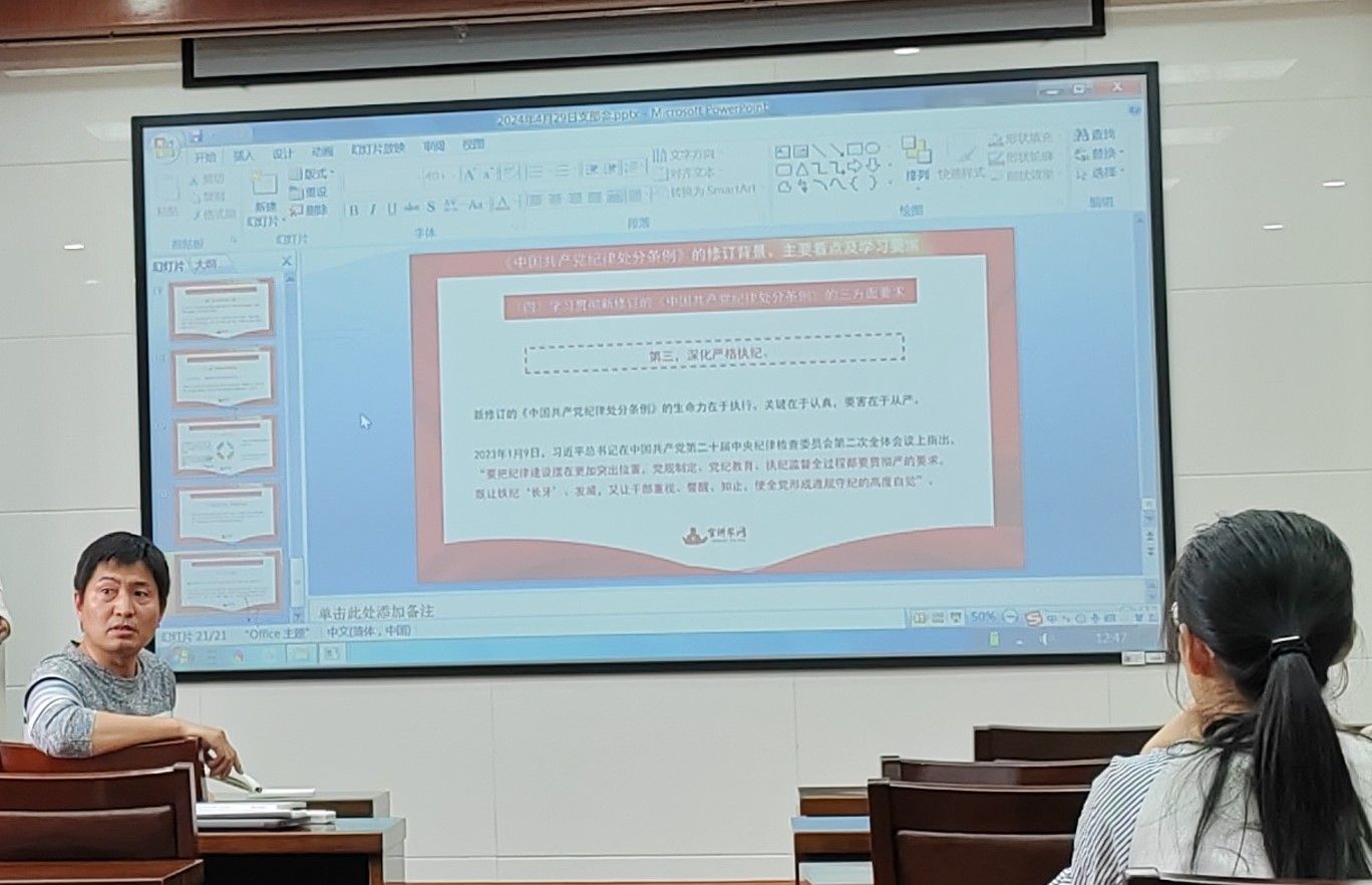 最后,书记王超同志对本次会议进行总结。他表示,希望支部党员、预备党员要认真学习党的纪律条例,增强纪律意识,推动支部纪律建设,发挥党员的模范带头作用,营造良好的学习环境。