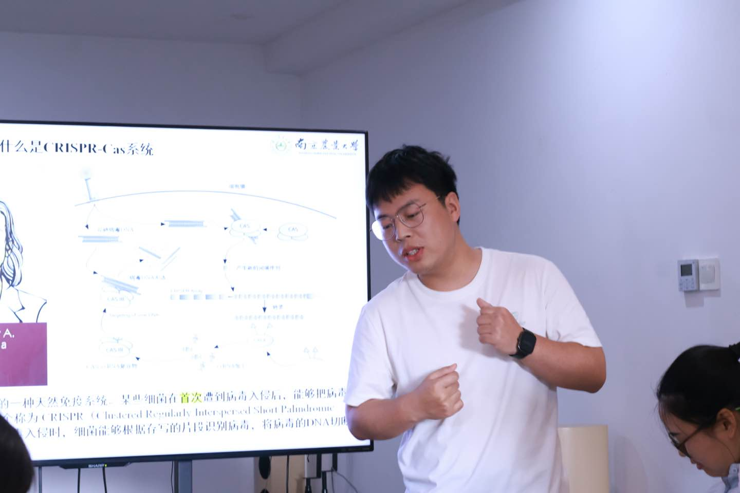 此外,动物育种博士生党支部李宏敏同志以“第三代基因编辑技术的发展”为主题,为在场师生带来了一场精彩的学术报告,深入浅出地介绍了该技术的核心原理、相较于前代技术的突破性优势。这场兼具学术深度与科普趣味的分享,不仅为本科生们打开了通向科技前沿的窗口,更激发了青年学子投身动物科技创新的热情与使命担当。