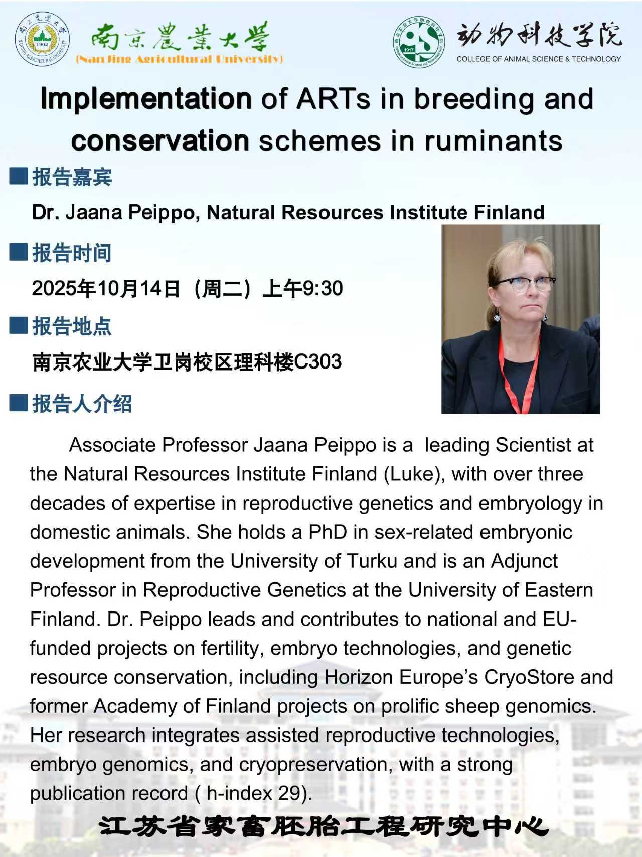 兴牧讲坛:Implementation of ARTs in breeding andconservation schemes in ruminants